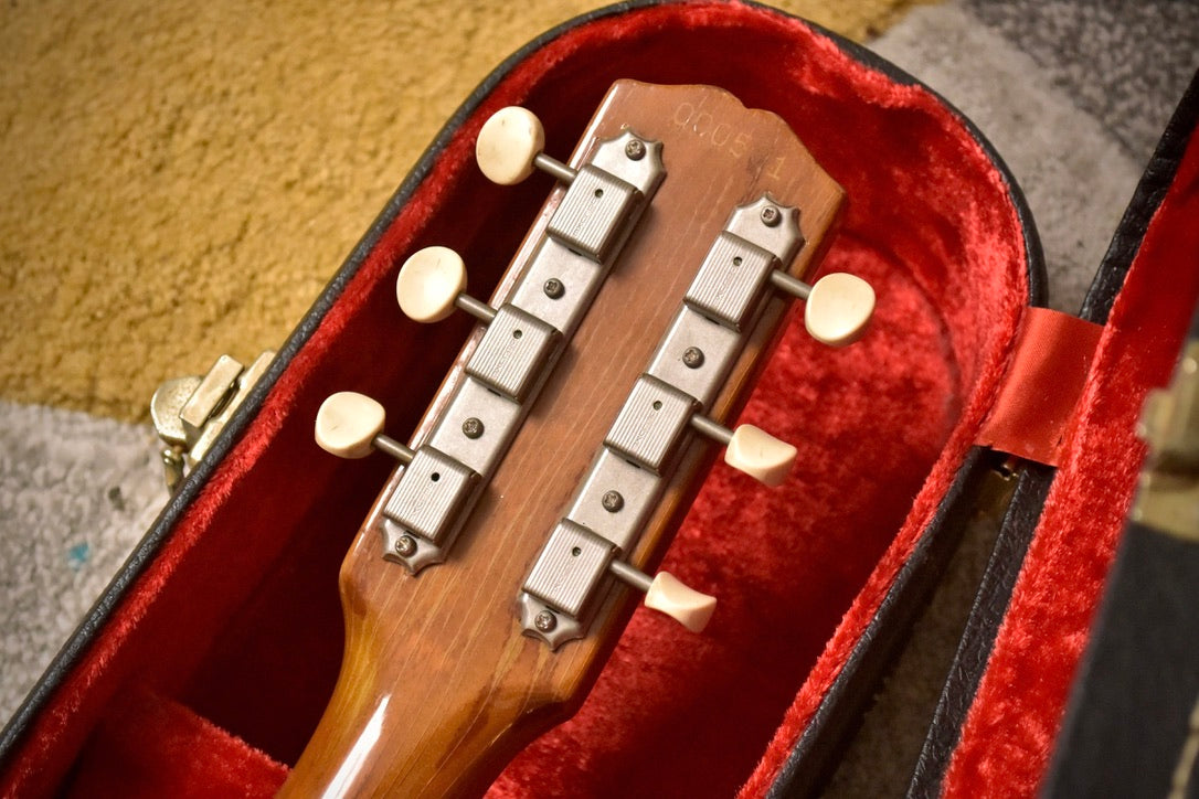 Whilst remaining mostly original, the guitar is currently sporting a repro set of Kluson Deluxe tuners. At some point, the holes were reamed out for larger shafts. The Vibrola Arm tip appears to be later. Supplied with a non-original black case.